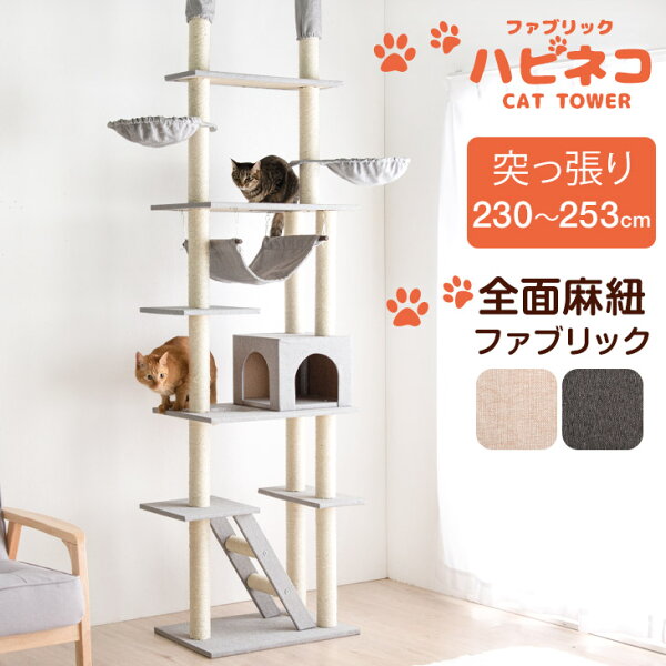 【おすすめ】【正午~クーポン3%引】 『くすみカラー』に一新! ファブリック キャットタワー 突っ張り 天井 スリム 高さ230〜253cm 支柱3本 ハンモック 多頭買い 猫タワー 麻紐 ネコ 子猫 大型猫 シニア スリム キャットハウス キャットツリー 紐付き 階段 爪とぎ おしゃれ|口コミ4.3点(542件)